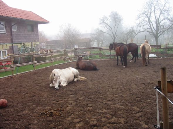 Die Pferde lieben den Platz für Ihr Mittagsschläfchen. Einige dösen im Liegen,