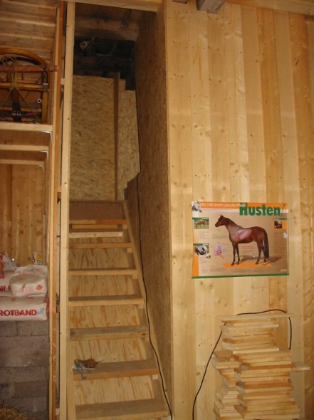 Futterkammer wurde eine Treppe eingebaut, um bequem ins Reiterstüble und ins
